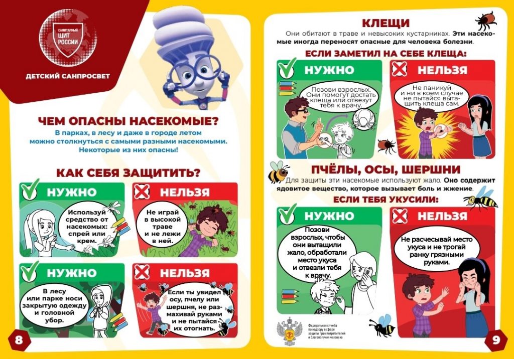 Теплеет… Скоро лето… А это значит, что будут прогулки по лесу, отдых на озерах и реках. Где обитает много насекомых. В памятке ниже представлена информация, что можно и что нельзя делать при контакте с насекомыми.
