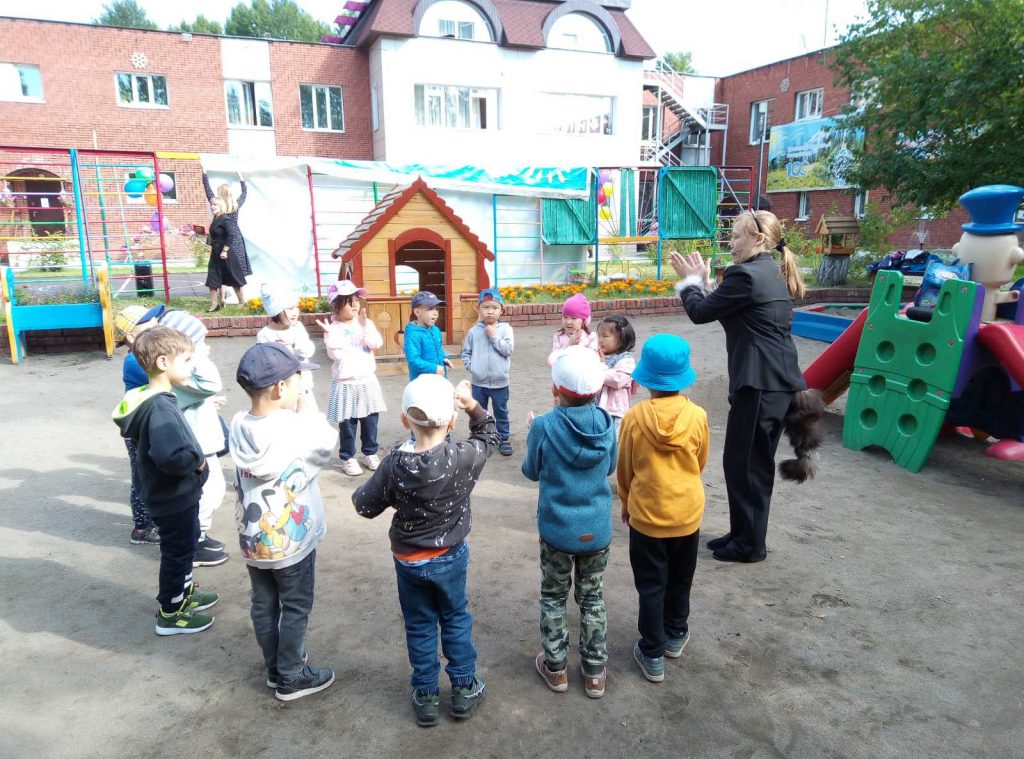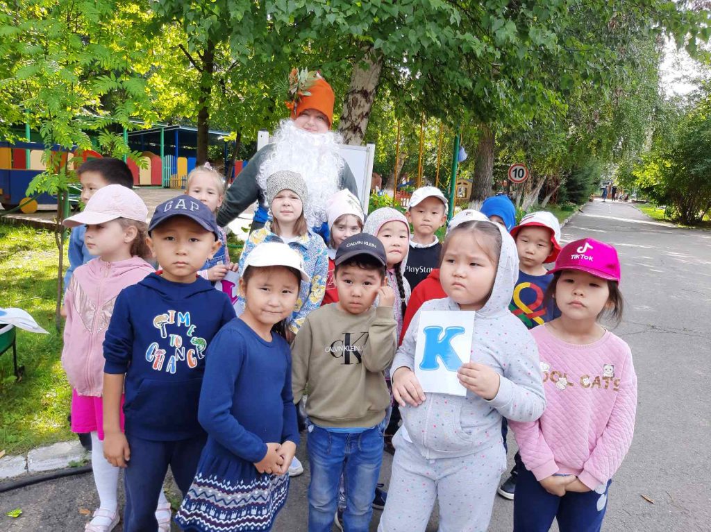 Для детей была организована квест-игра «Путешествие в страну Знаний». Ребята помогли ученому Коту собрать странички письма-приглашения и узнали, куда пригласили Кота 1 сентября. Чтобы собрать все странички письма, каждой группе нужно было пройти маршрут по сказочным местам, где они встречались с героями сказок. Получив маршрутные листы от Кота, ребята отправились в увлекательное путешествие. На пути им встретились Лесовичок с заданиями по окружающему миру, медведь Потапыч с играми по речевому развитию, художник Карандаш с заданиями по рисованию, веселый Клоун со спортивной тропой. Чтобы выполнить задание сказочных героев, дети пели песни, танцевали, преодолевали препятствия, решали задачи.