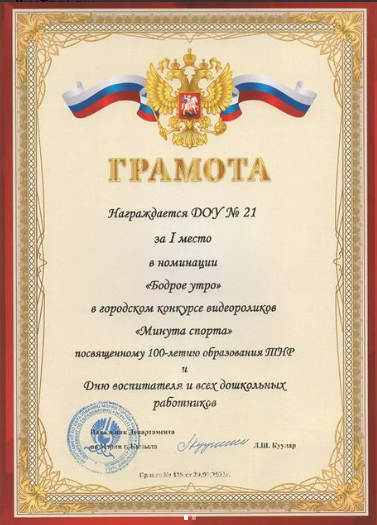 В честь Дня воспитателя и всех дошкольных работников состоялось торжественное поздравление и вручение грамот от Депортамента по образованию Мэрии г.Кызыла, Почетных грамот от Хурала представителей г.Кызыла, Мэрии г.Кызыла, Министерства образования и науки РТ сотрудникам детского сада за творческое отношение к работе, профессионализм, высокие результаты в воспитании и обучении подрастающего поколения.