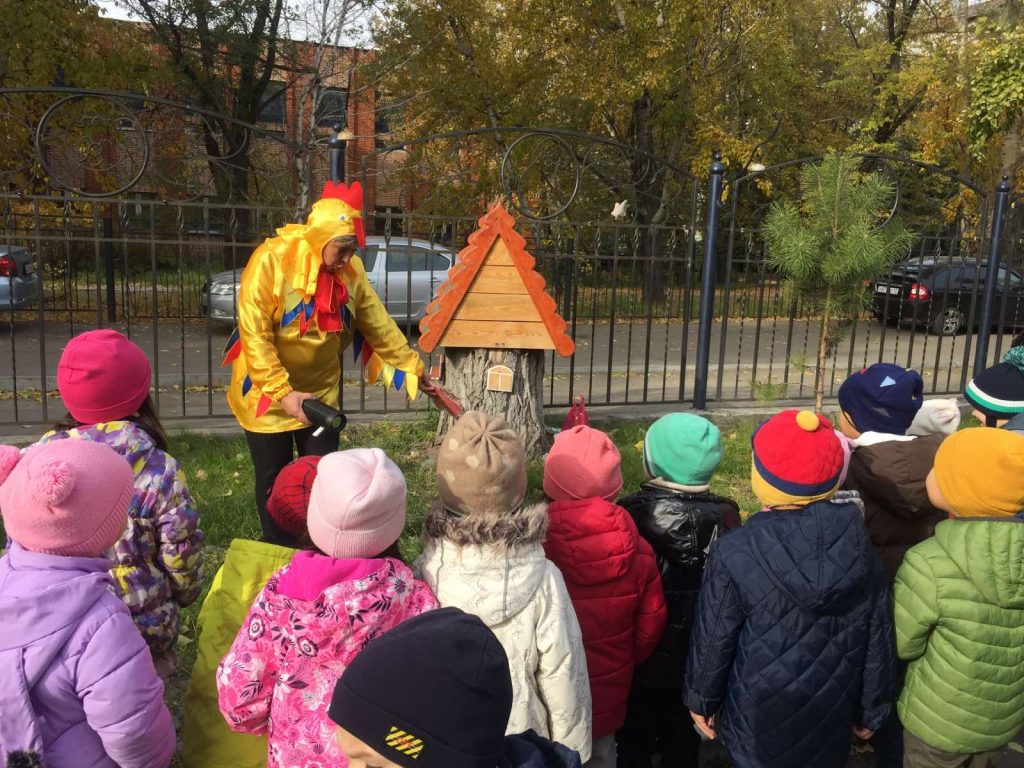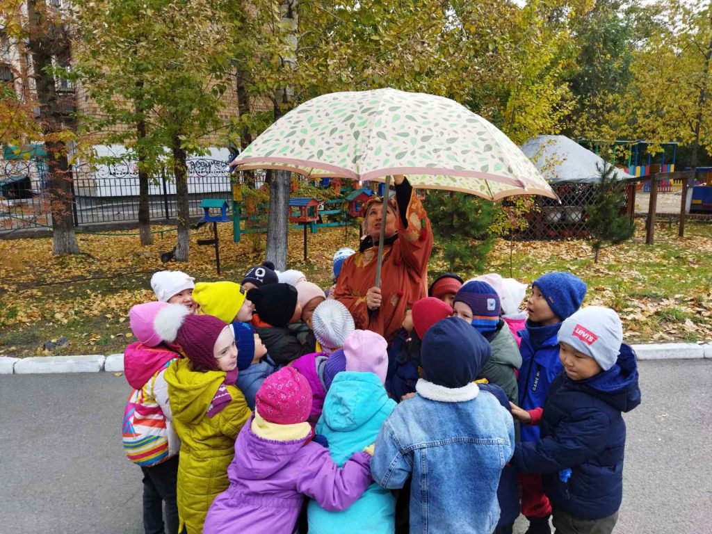 В младших группах были проведены осенние развлечения «Осень в гостях у малышей» и музыкально-ритмичная игра «Листопад», «Дождик». К ребятам из средних групп приходила в гости Тетушка Осень и приносила волшебный букет из листьев с заданиями. В старших и подготовительных группах прошла квест-игра «В поисках красок Осени», где дети встретили сказочных героев таких, как Золушку, Кощей Бессмертный Страшила, Мишку, бабушку Ягу и петушка Петю. Дети выполнили все испытания, все задания и встретили красавицу Осень.