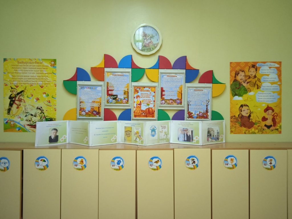 В группах и приёмных были оформлены центры, посвящённые родному тувинскому языку. Это и папки-передвижки, и художественная литература детских писателей Тувы, и красочные плакаты — все создавало праздничное настроение у детей и их родителей.⠀